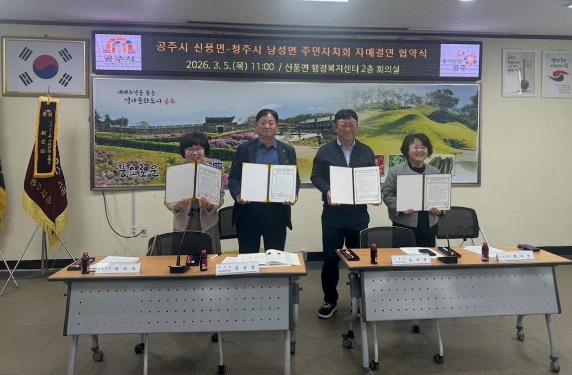 [충청25시] 공주시 신풍면은 지난 5일 신풍면 주민자치회와 청주시 낭성면 주민자치위원회가 자매결연 협약을 체결했다고 밝혔다.
