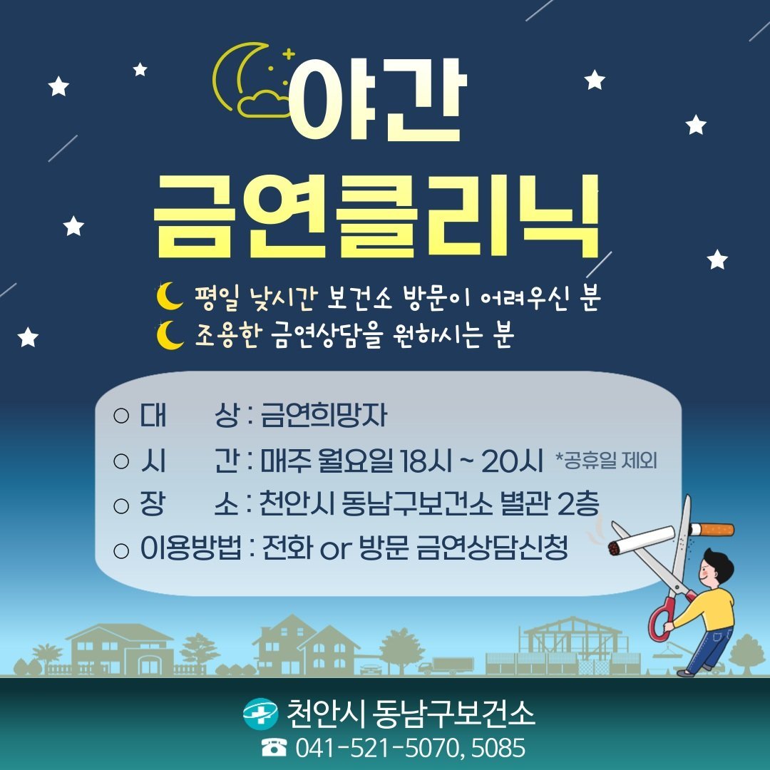 [충청25시] 천안시 동남구보건소는 새해를 맞아 오는 11월까지 야간 금연클리닉을 운영한다고 8일 밝혔다.