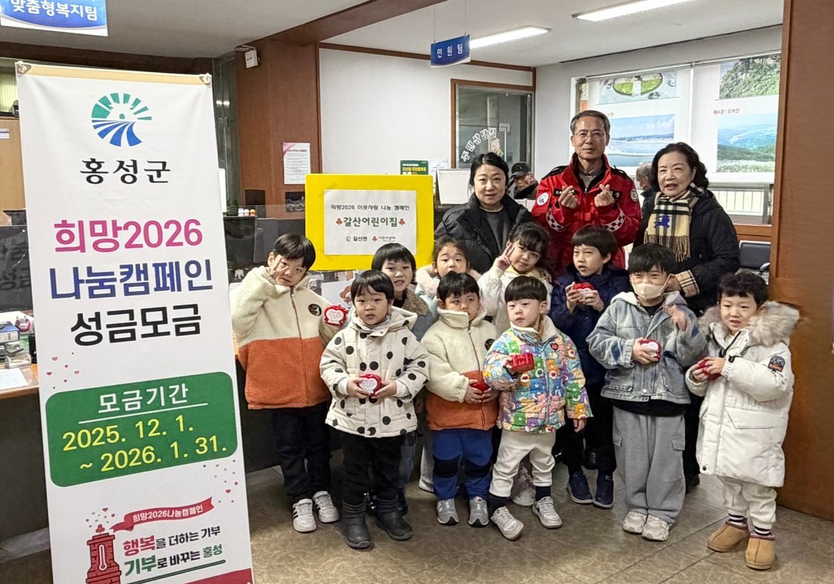 [충청25시] 홍성군은 갈산어린이집 원아와 교직원들이 지난 23일 갈산면 행정복지센터를 방문해 어려운 이웃을 돕기 위한 ‘사랑의 저금통’을 전달했다고 밝혔다.