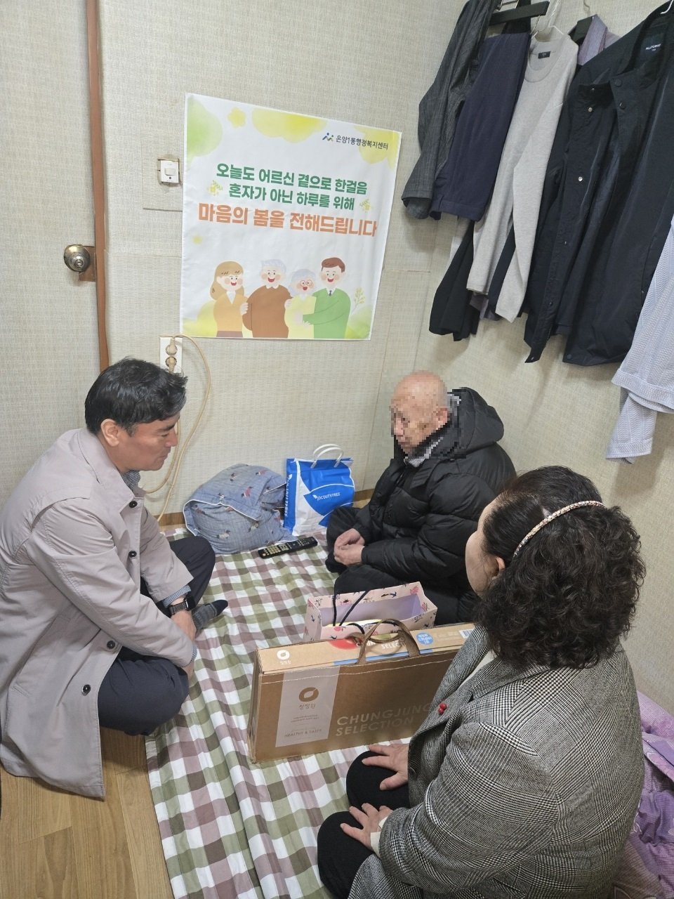 [충청25시] 아산시 온양1동 행정복지센터는 25일과 27일 온천1통 온천2통 최고령 독거 어르신을 찾아 안부를 묻고 건강을 살피는 복지통장 특화사업 '마음의 봄을 나누어 드립니다'를 진행했다.
