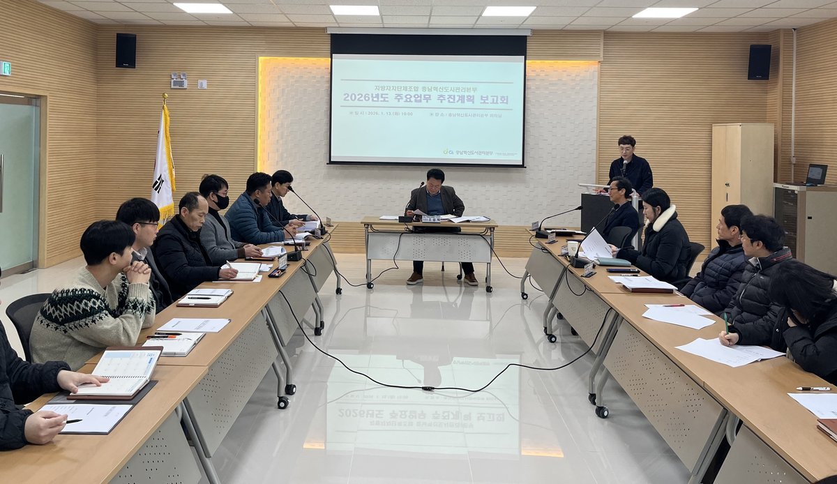 [충청25시] 지방자치단체조합 충남혁신도시관리본부는 지난 13일 2026년도 주요업무 추진계획 보고회를 열고 올해 주요 역점 사업과 핵심과제를 공유했다.