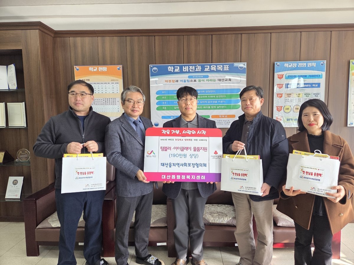 [충청25시] 대산읍지역사회보장협의체는 지난 12월 24일 대산초등학교 교무실에서 2026년 초등학교 입학생을 위한 후원물품 전달식을 가졌다.