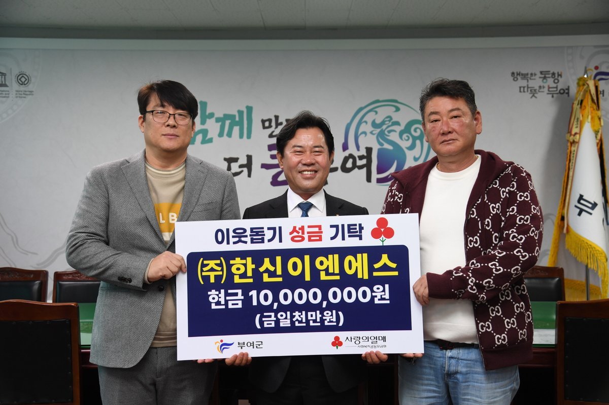 [충청25시] ㈜한신이엔에스는 부여군청을 방문해 관내 소외된 이웃을 위한 사랑의 성금 1000만원을 전달했다고 10일 밝혔다.