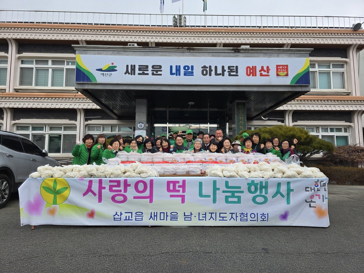[충청25시] 예산군 삽교읍 새마을지도자협의회는 지난 11일 삽교읍행정복지센터에서 설 명절을 맞아 지역 내 취약계층을 위한 사랑의 떡 나눔 행사를 개최했다.