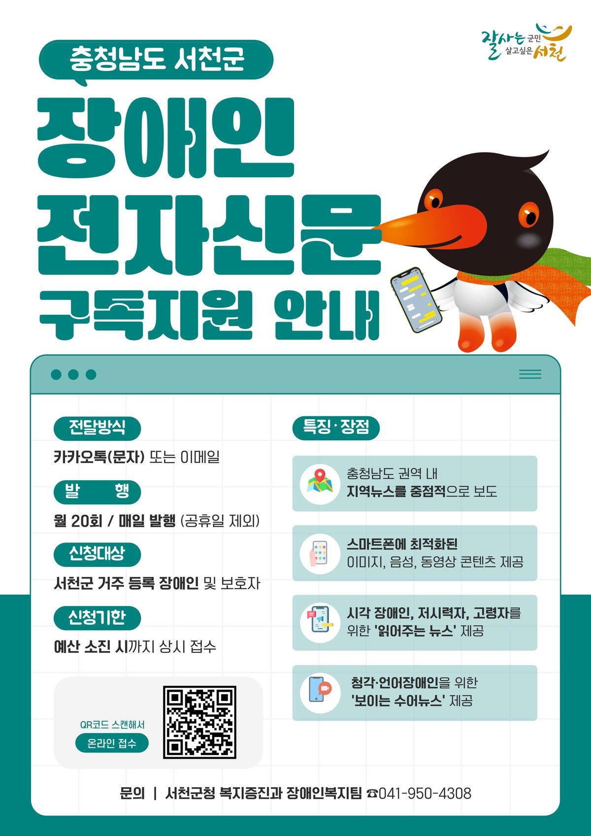 [충청25시] 서천군은 정보 취약계층인 장애인의 정보 접근성 향상과 알권리 보장을 위해 ‘장애인 전자신문 구독 지원사업’을 오는 3월부터 본격 시행한다.
