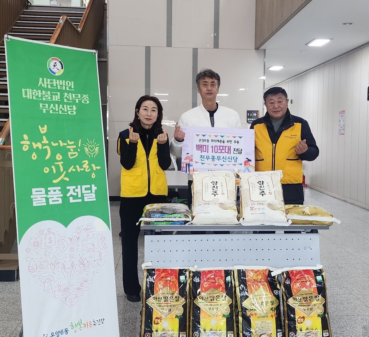 [충청25시] 사단법인 대한불교 천무종 무신신당은 지난 6일 백미 10kg 10포를 온양6동 행복키움추진단에 전달했다.
