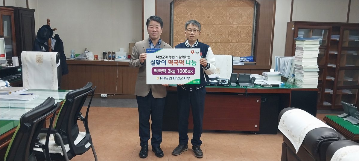 태안군은 지난 4일 군청 집무실에서 가세로 군수와 이동수 지부장, 홍성훈 회원지원단장, 박미영 지점장 등이 참석한 가운데 기탁식을 갖고 150만원 상당의 떡국떡 100박스를 전달받았다.