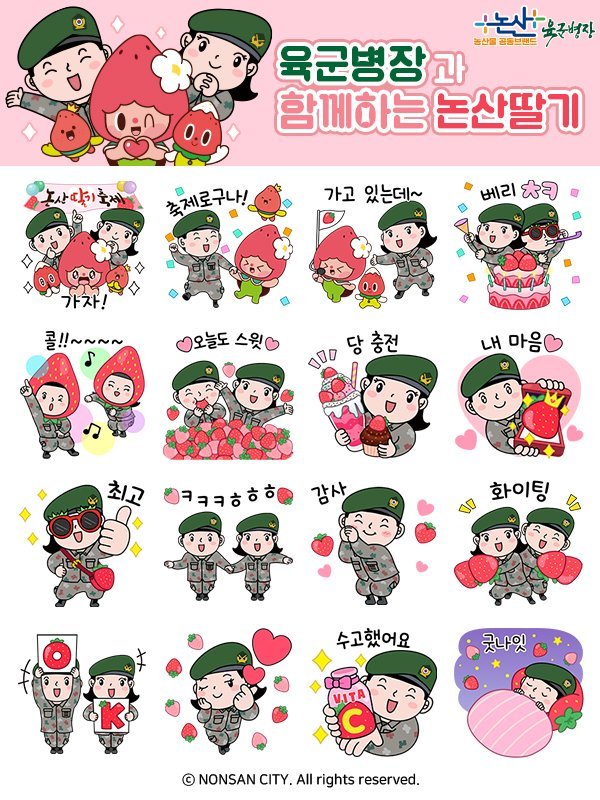 [충청25시] 논산시가 오는 3월 26일부터 29일까지 개최되는 ‘2026 논산딸기축제’를 맞아 ‘육군병장’카카오톡 이모티콘을 배포한다.