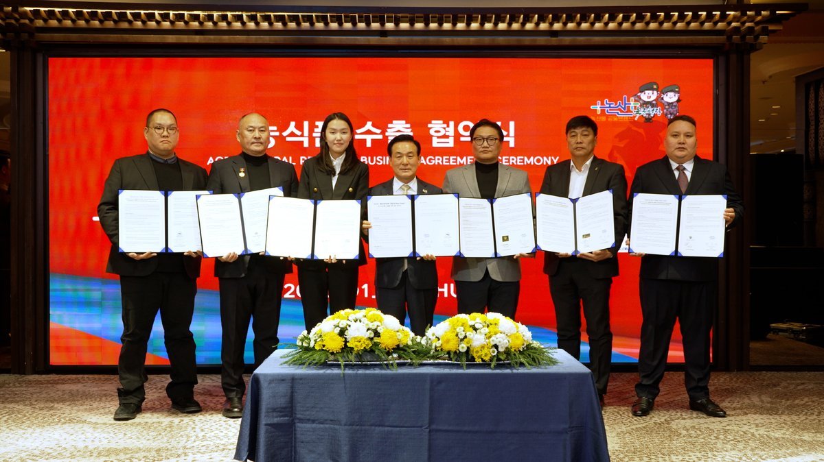 이번 협약에 따라 2026년부터 2028년까지 딸기, 포도 등 논산 농식품이 몽골 시장에 수출되며 총 협약 규모는 70만 달러에 달한다.