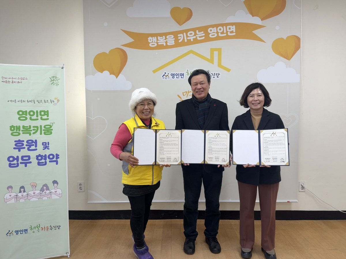 [충청25시] 아산시 영인면 행복키움추진단은 지난 22일 우신설비㈜와 취약계층 지원을 위한 후원 협약을 체결하고 후원금 전달식을 진행했다.