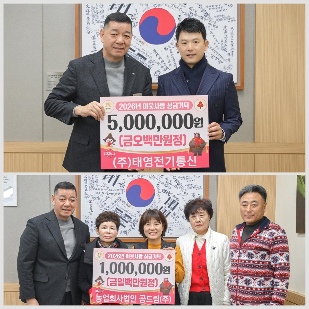 같은 날 ㈜태영전기통신 김재원 이사도 이웃돕기 성금 500만원을 기탁했다.