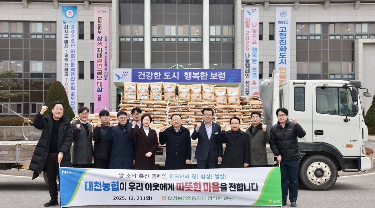김동일 보령시장은 “어려운 여건 속에서도 매번 따뜻한 손길을 내어주시는 대천농협 덕분에 보령시의 나눔 온도가 더욱 높아지고 있다”며 “기탁해주신 성품은 필요한 곳에 소중히 전달하겠다”고 말했다.